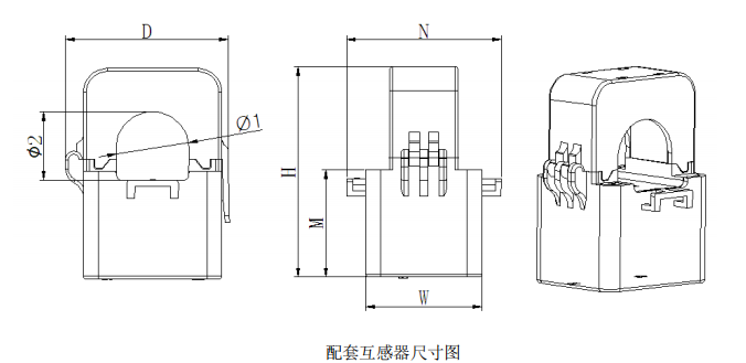 注:可选择外置吸盘天线,标配线长 2 米。 2.2 配套互感器命名规则